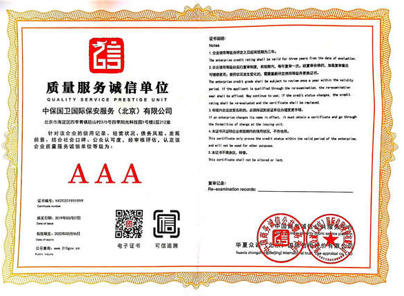質(zhì)量服務(wù)誠(chéng)信單位AAA